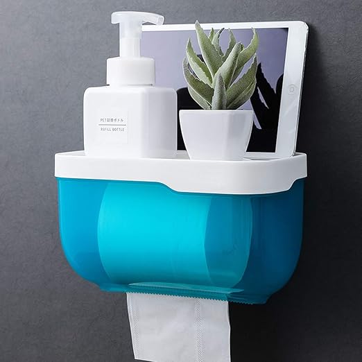Blue Roll Holder Dispenser With Shelf Indoor Outdoors