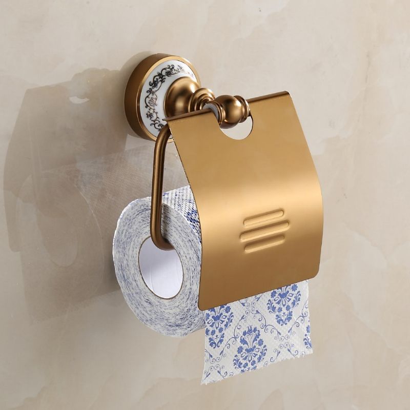 Antique Brass Solid Brass Bathroom Toilet Paper Holder Blue And