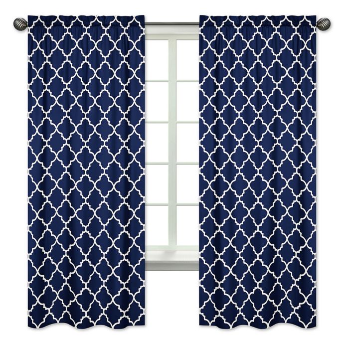 Sweet Jojo Designs Trellis 84 Inch Rod Pocket Window Curtain Panel Pair In Navy Bed Bath Beyond