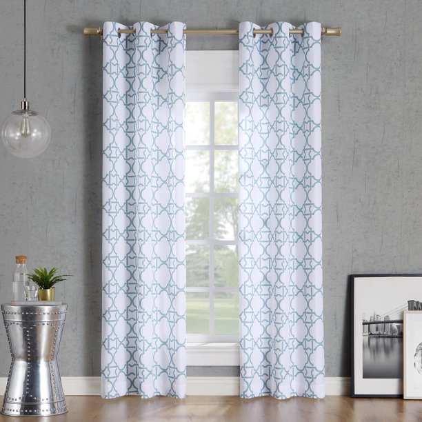 Blue Trellis Curtains Drapes Window Treatments The Home Depot