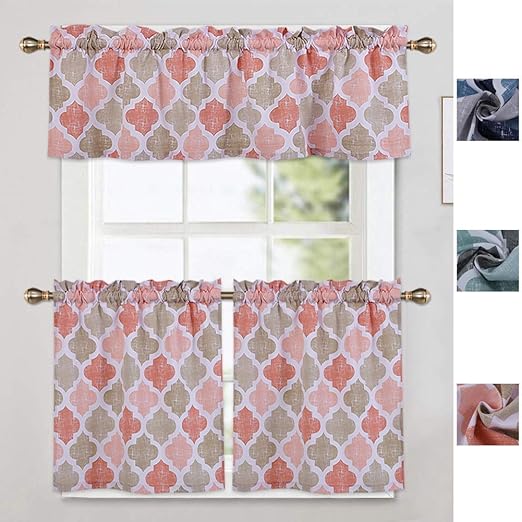Blue Caromio Quatrefoil Trellis Pattern Thick Cotton Poly Blend Rod Pocket Small Half Window Curtains For