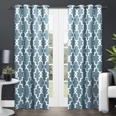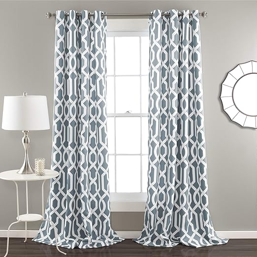 Amazon Com Driftaway Abigail Trellis Room Darkening And Thermal Insulated Grommet Unlined Window Curtains Set Of 2 Panels Each 52 Inch By 84 Inch Blue Kitchen Dining