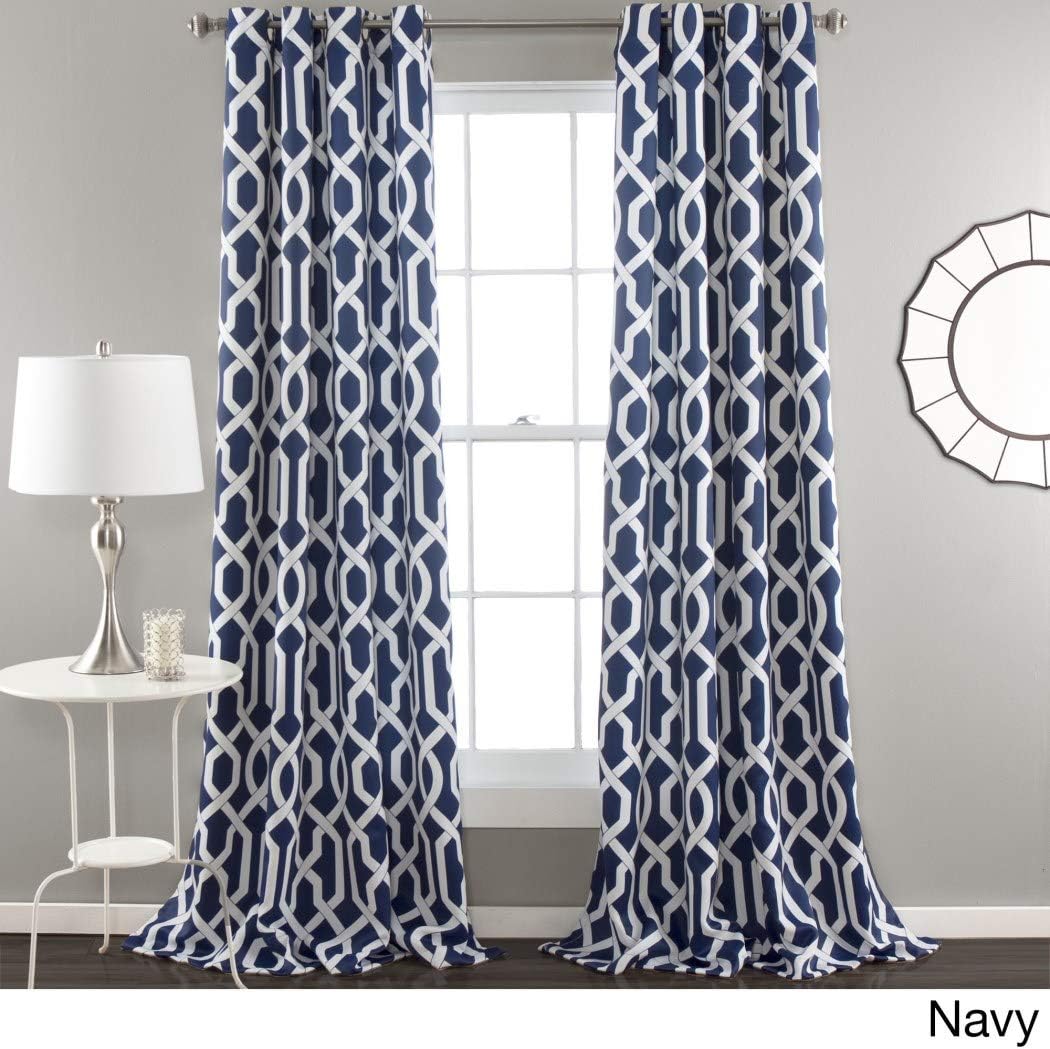 Amazon Com Lush Decor Geo Trellis Curtains Room Darkening Window Panel Drapes Set For Living Dining Bedroom Pair 84 X 52 Navy Home Kitchen