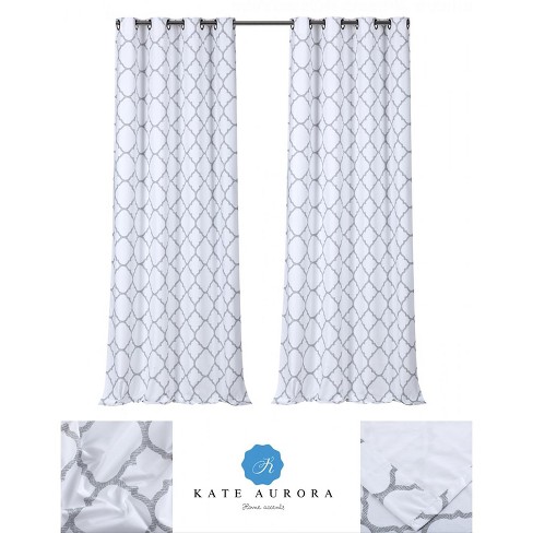 Kate Aurora 2 Pack Kate Aurora Thermal Lined Gray White Trellis Grommet Blackout Curtains Target