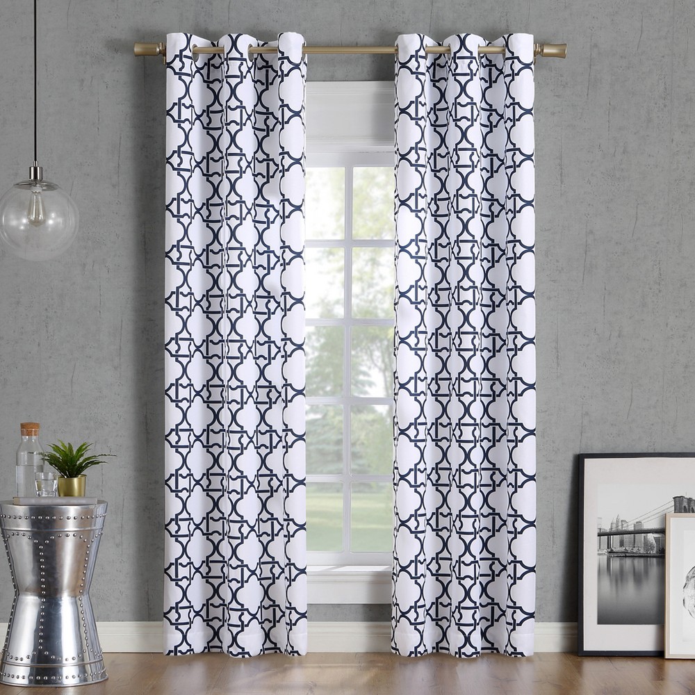 Set 2 Navy Blue White Geo Trellis Curtains Panels Drapes 63 84 96 Inch Darkening Ebay
