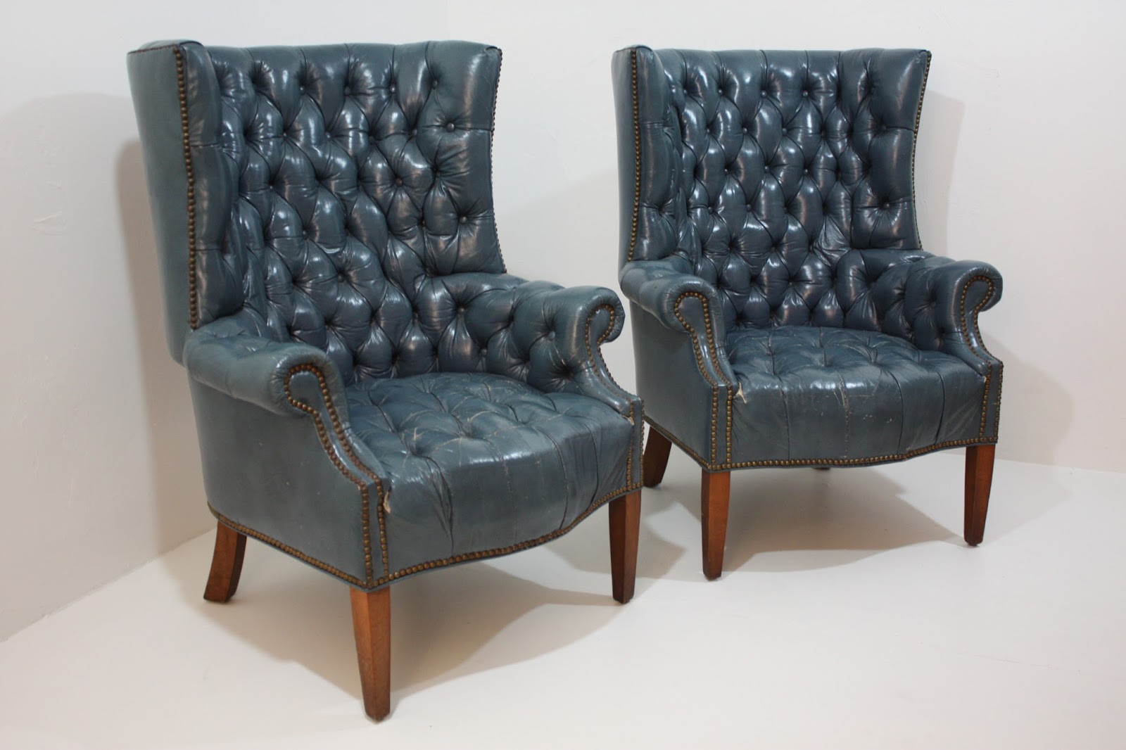 Blue Tufted Wingback Chairs Pair On Onekingslane Com Wingback