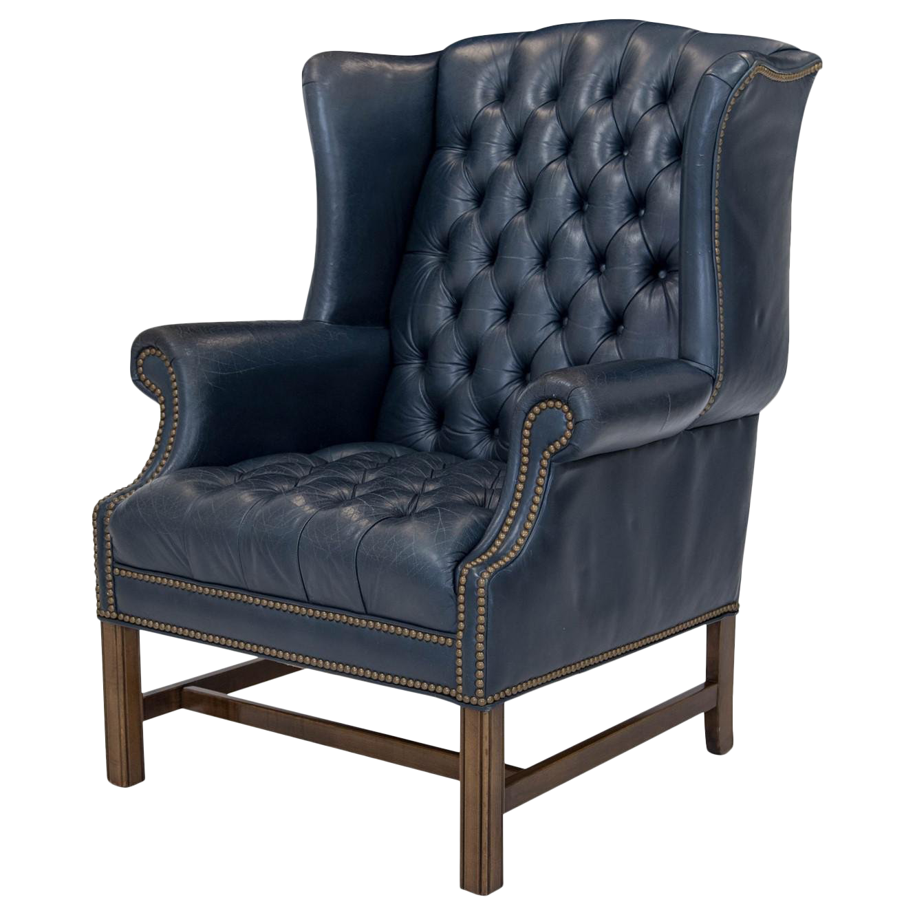 Fabulous Navy Blue Leather Tufted Wing Chair At 1stdibs