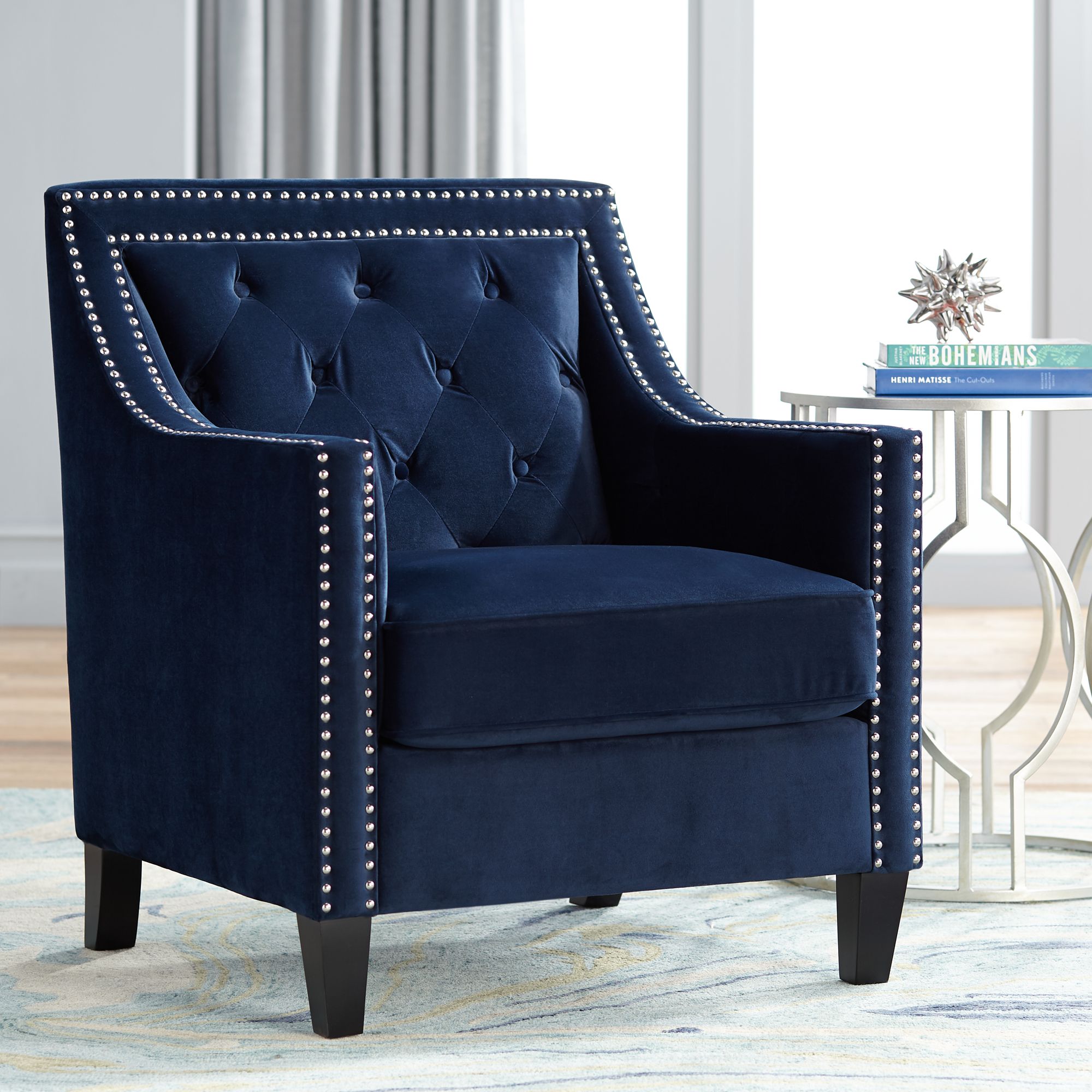 Spectra Home Marley Tufted Chair Navy Blue Usa Furniture Warehouse
