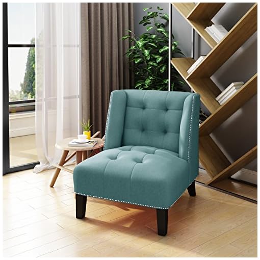 Inspired Home Aniston Teal Velvet Wingback Button Tufted Armless
