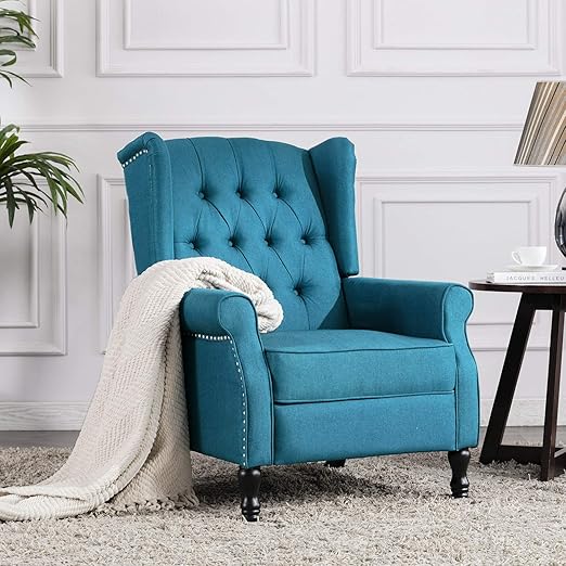 Amazon Com Ansley Hosho Blue Recliner Chair Tufted Velvet