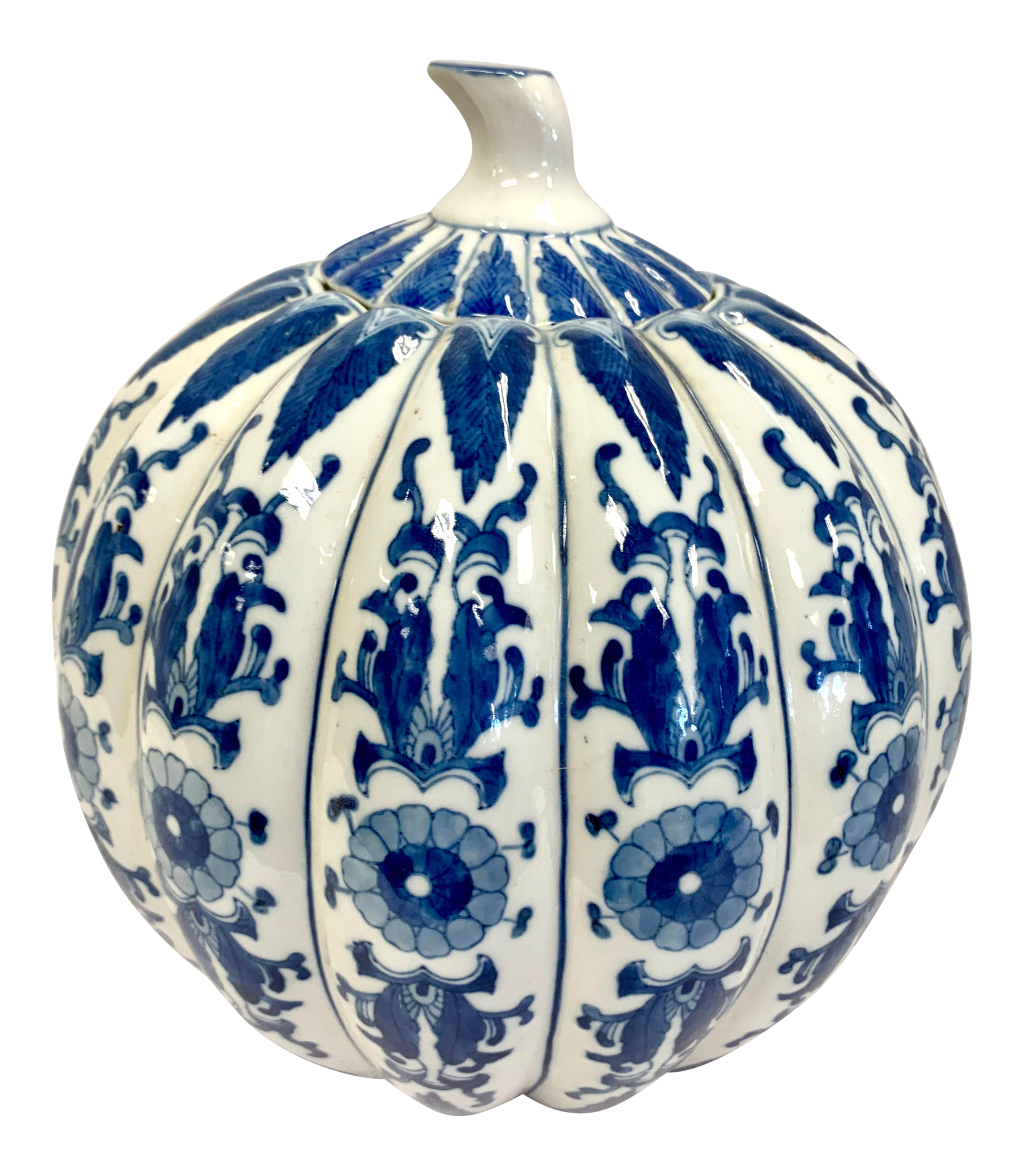 Chinese Chinoiserie Blue And White Porcelain Pumpkin Ginger Jar