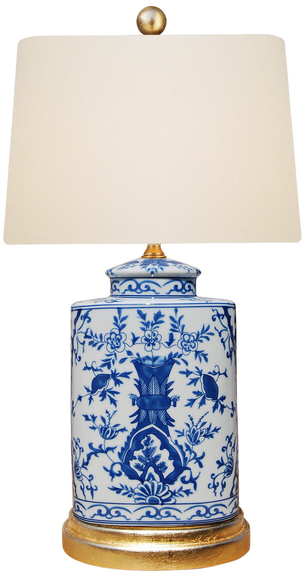 Blue And White Floral Patterned Porcelain Tea Jar Table Lamp