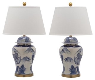 S 2 Shanghai Table Lamps Blue White One Kings Lane