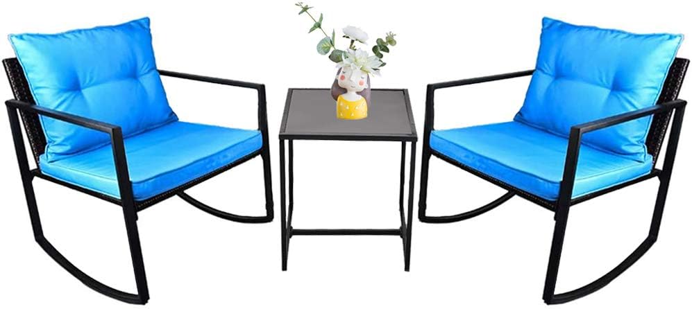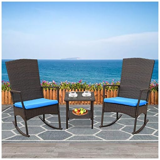 Kinbor Reoc005bu Patio Rattan Rocking Chairs With Table Blue 3