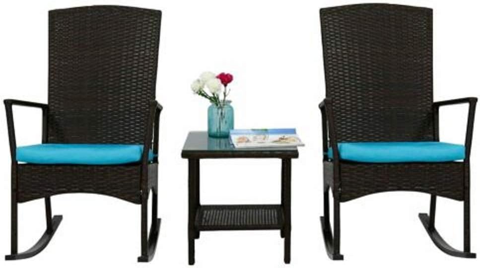 Amazon Com Tangkula 3 Pcs Wicker Rocking Bistro Set Outdoor