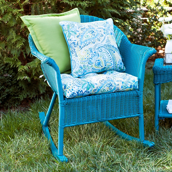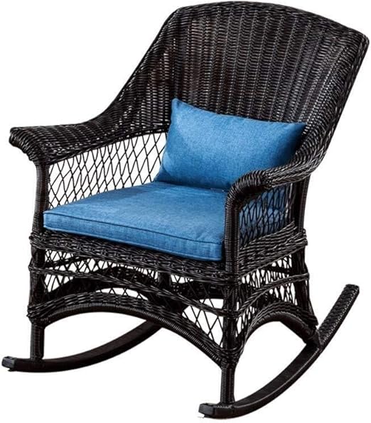 Porch Lane Wicker Rocking Chair Blue Seat Cushion Outdoor Garden