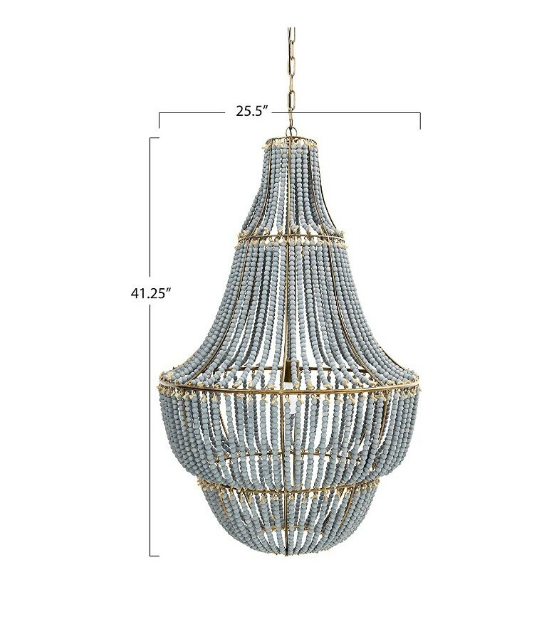 The Most Gorgeous Blue Wood Bead Chandelier For The Breakfast Room