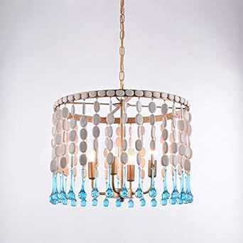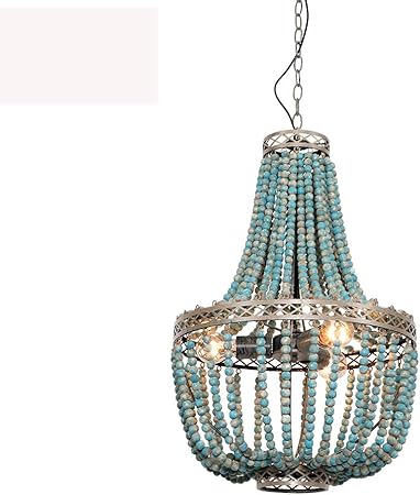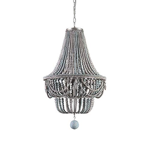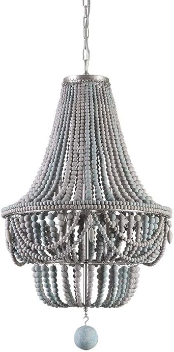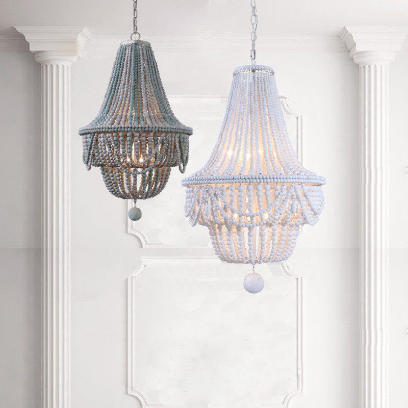 Blue And Gray Beaded Chandelier Shabby Chic Wooden Hanging Pendant