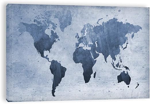 Amazon Com Printfactory Canvases Grey Blue World Map Premium Wall