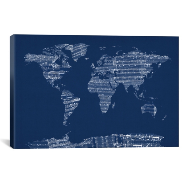 Blue World Map Sheet Music Giclee Canvas Art Print Kirklands