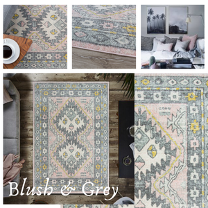 Grey Blush Pink Area Rug Geometric Medallion Vintage Traditional