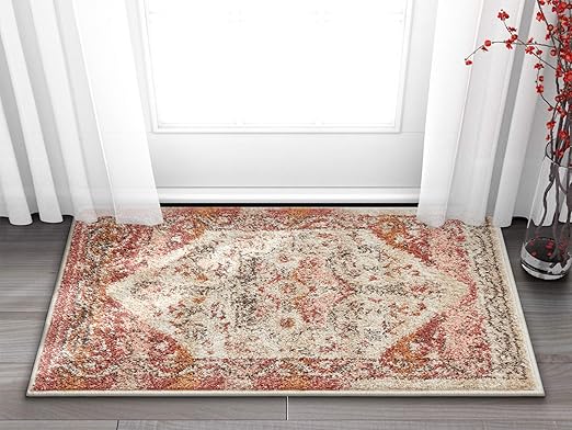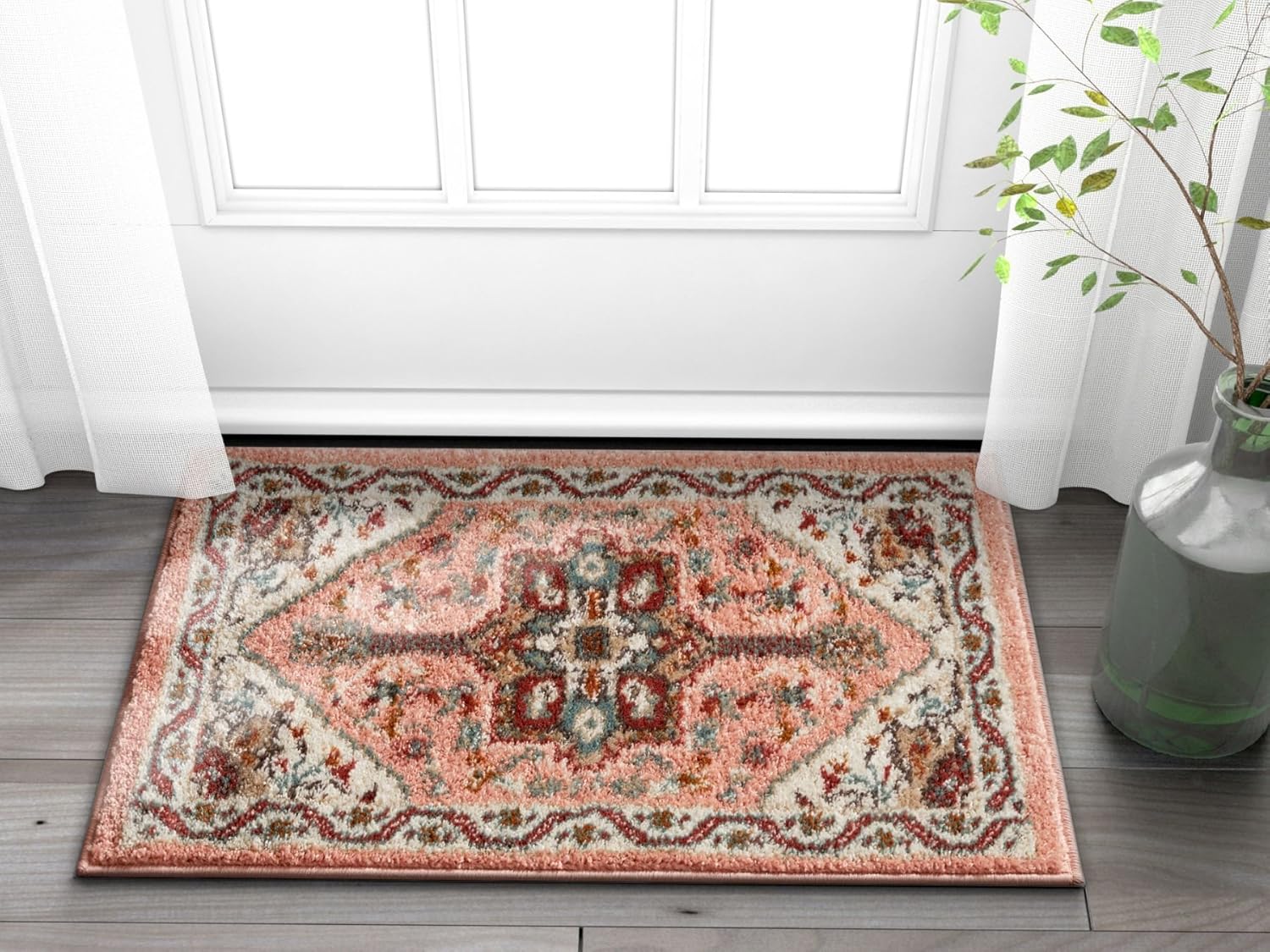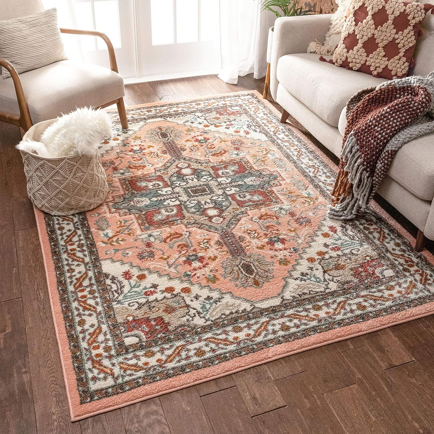 Amazon Com Lyon Blush Pink Vintage Medallion Short Pile Kilim