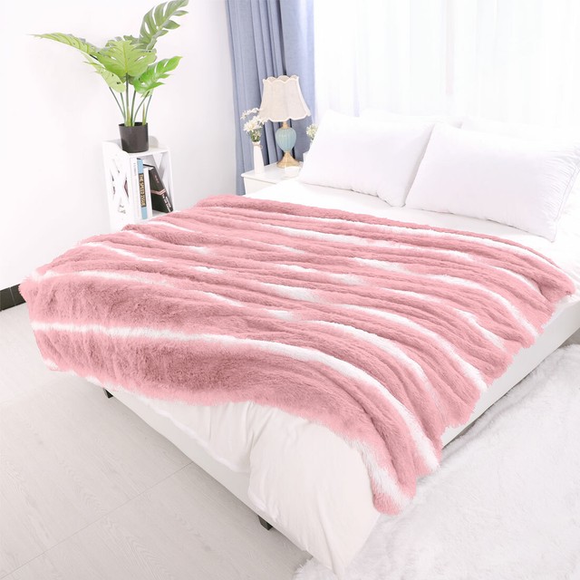 Swift Home 60 In X 70 In Blush Super Plush High Pile Faux Fur Oversized Throw Blanket Shthw1 001 Bh The Home Depot