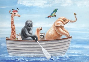 Animals In Boat Canvas Print Painting Wall Art Home Decor 70x100cm
