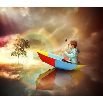 Pitaara Box Child Sitting In An Umbrella Boat Canvas Painting Mdf