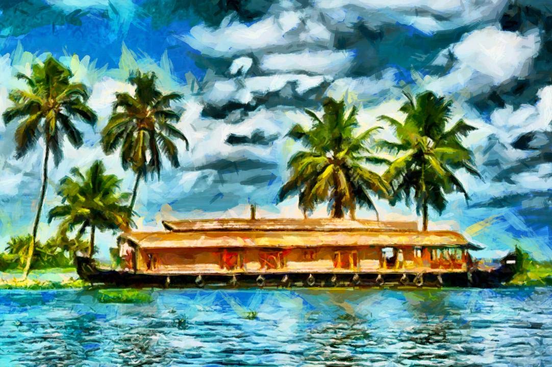 999store Framed Printed Kerala Traditional House Boat Canvas