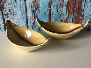 Two Vintage Ceramic Boat Shaped Shrimp Boat Dishes Two Sides