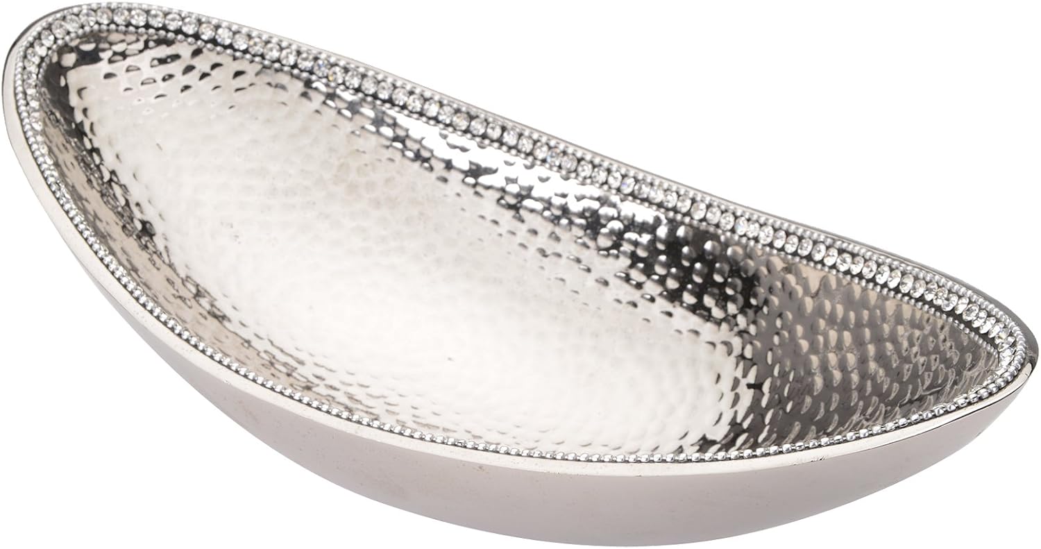 Classic Touch Sdb230 Hammered Stainless Steel Boat Shaped Bowl