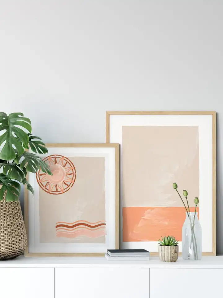 Boho Bedroom Gallery Wall Set Mid Century Art Canvas Painting