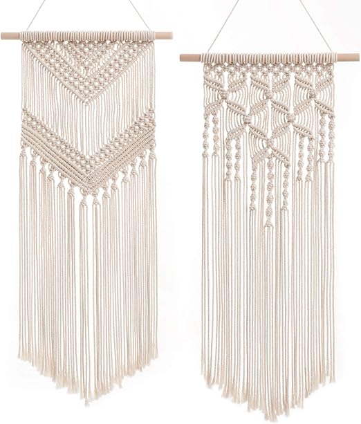 Amazon Com Dahey 2 Pcs Macrame Wall Hanging Decor Woven Wall Art Macrame Tapestry Boho Chic Home Decoration For Apartment Bedroom Nursery Gallery 13 W 27 L And13 W 29 L Home Kitchen