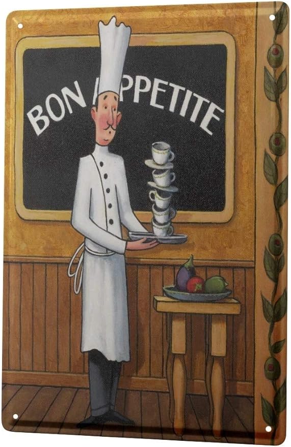 Zendori Art Bon Appetit French Italian Fat Chef Kitchen Plaque