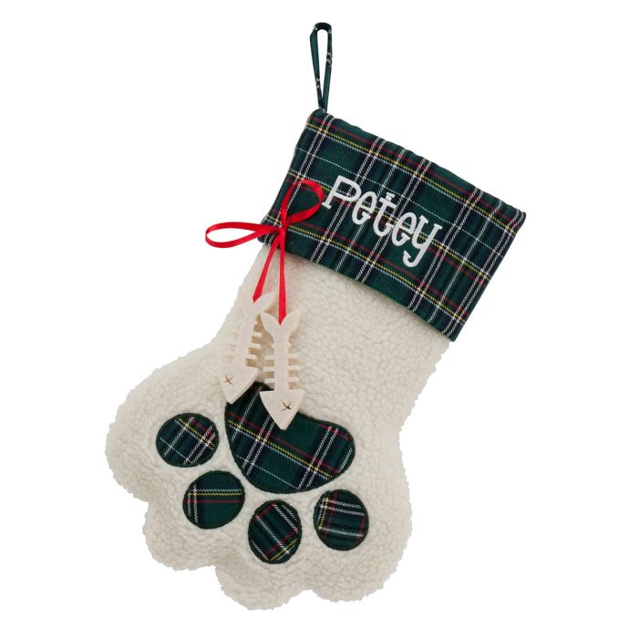 Puppy Paws 15 Inch Christmas Stocking With Fish Bone In Green