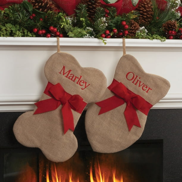Personalized Dog Bone Christmas Stocking Burlap Pet Christmas Etsy
