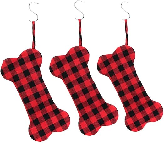 Buffalo Plaid Dog Bone Christmas Stocking Pets Christmas Ornament