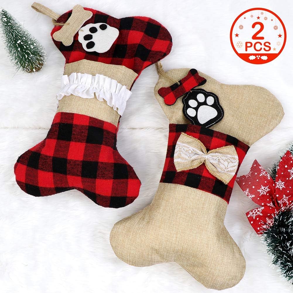 Amazon Com Ourwarm 2pcs Pet Dog Christmas Stockings Burlap Plaid