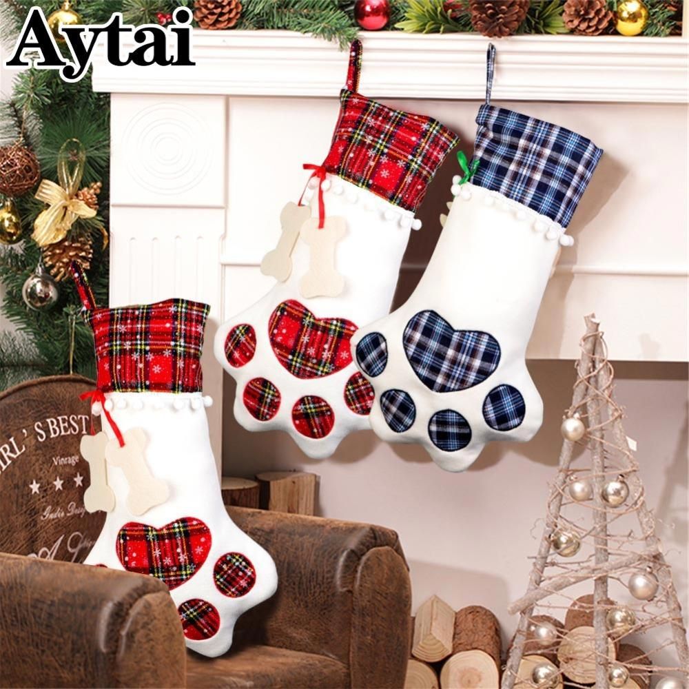 Christmas Stockings Big Size 3d Pet Dog Paw Fish Bone Christmas