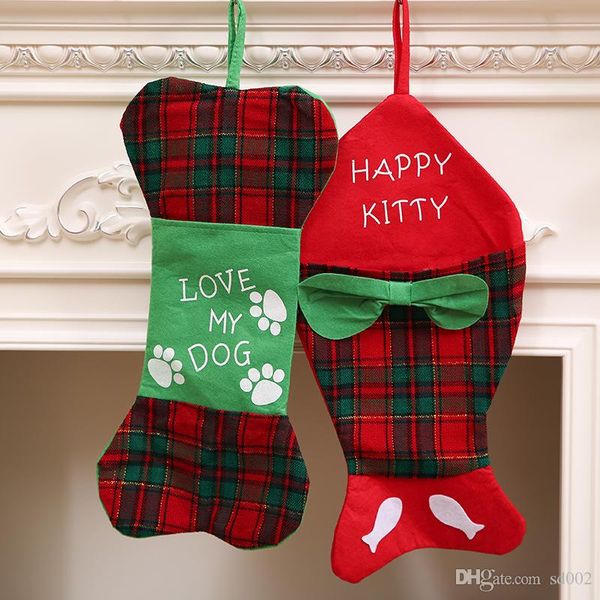 New Christmas Stockings Customized Pet Dog Bone Fish Candy Bag