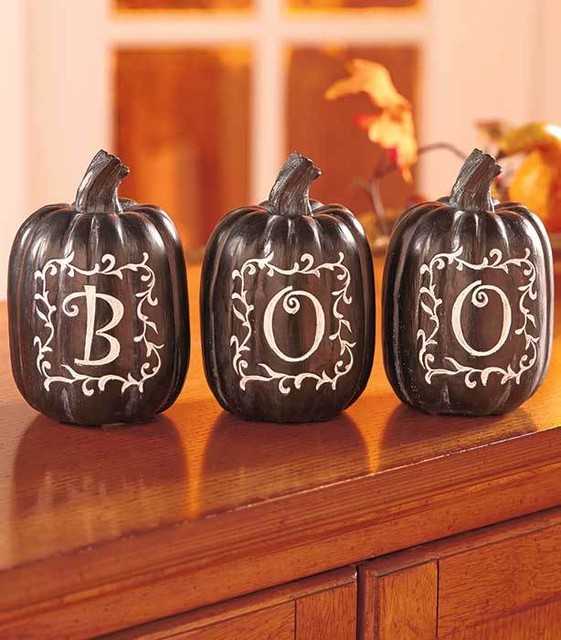 Set Of 3 Pumpkins Boo Black White Jack O Lantern Halloween