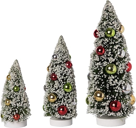 Amazon Com Creative Co Whimsy Tabletop Bottle Brush Christmas Trees With Colorful Ornaments Set Of 3 Home Kitchen