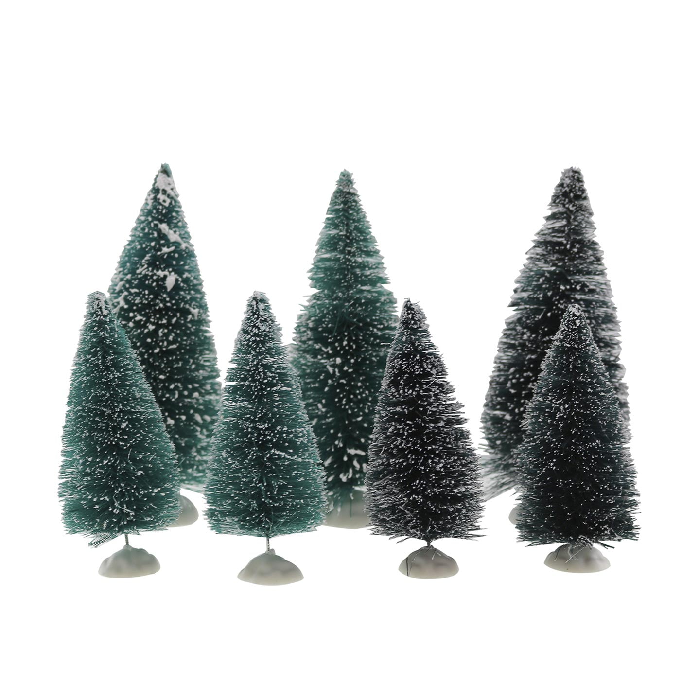 Assorted Frosted Green Bottle Brush Trees Christmas Miniatures