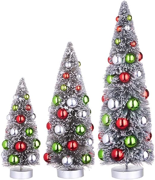 Decorated Bottle Brush Tree Set Christmas Miniatures Christmas