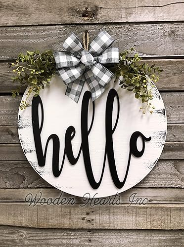 Hello Wreath Signs Door Hanger Welcome With Bow Front Door Decor