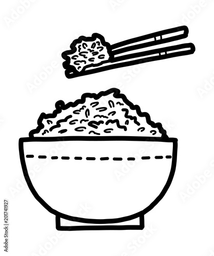 Rice Bowl Cartoon Vector And Illustration Black And White Hand