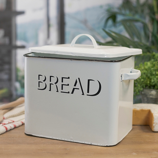 White Metal Enamelware Bread Box Kirklands