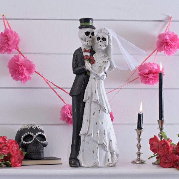 Spooky Skeleton Bride And Groom Wedding Couple Statue For