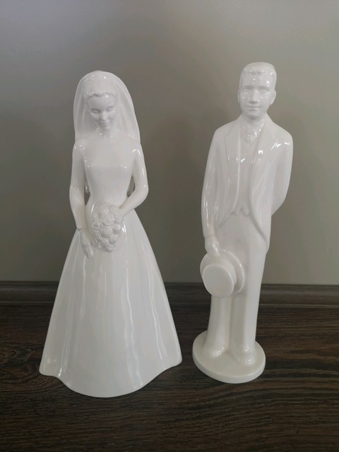 Porcelain Painted Classic Bride And Groom Statue Cake Topper 8 25